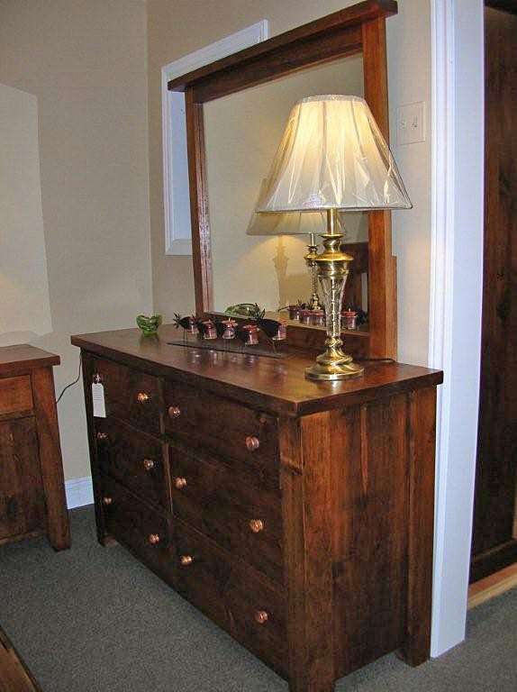 60 inches wide, 36 inches tall, 20 inches deep.With Landscape MirrorThis beautiful handcrafted 6 drawer rough sawn pine dresserAlso available in Wormy Maple.