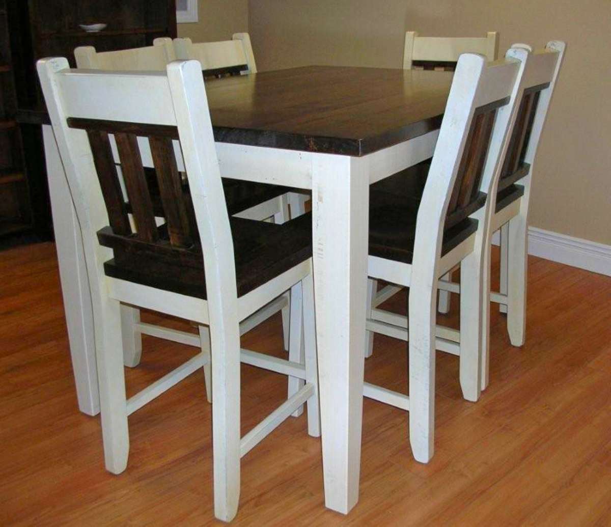 Counter Height Dining TableShown with Model no. RF4024 Wormy Maple Bar Chairs.Finished in 2-tone White Distressed & Dark Walnut stainH: 36"D: 60"W: 40"